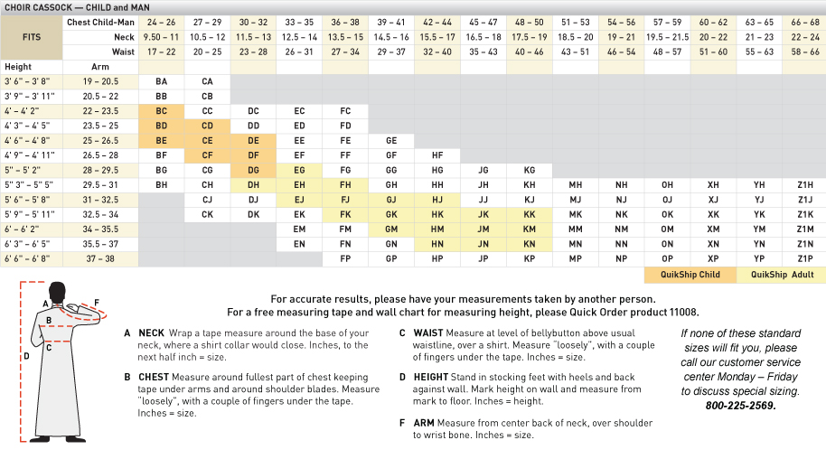 QuikShip sizes are available for a wide range of children and adults; non-stock sizes are also available to fit everyone in your choir